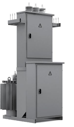 КТП мощностью от 25 до 250 кВа мачтового типа оформляются в виде конструкции, содержащей высоковольтный шкаф ввода, низковольтный шкаф и платформу для установки трансформатора.
