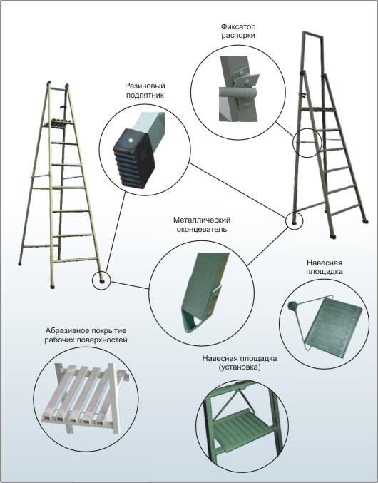 В конструкции стремянки предусмотрены: