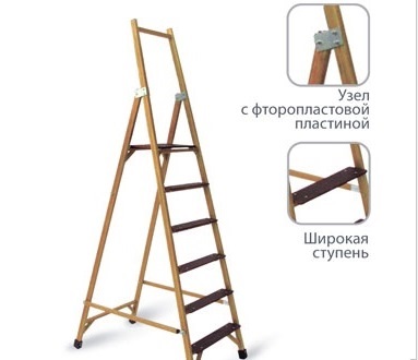 Наиболее традиционный и самый распространенный вид стремянок. Проста, удобна в эксплуатации. Рабочая площадка имеет фиксатор из нержавеющей стали. Ступени имеют противоскользящее покрытие. Все металлические детали выполнены из нержавеющей стали, либо из оцинкованного железа. Может использоваться, как внутри помещений так и на открытом воздухе, в суровых клииатических условиях. Также стремянки по желанию заказчика могут комплектоваться колесами.