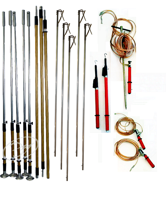 Комплект штанг для заземления ВЛ 0,4-10 кВ КШЗУ-0,4-10Н предназначен для заземления проводов отключенных ВЛ напряжением 0,4-10 кВ непосредственно с поверхности земли, а с указателями напряжения также для проверки наличия или отсутствия напряжения на воздушных линиях, при температуре от -45°С до +45°С и