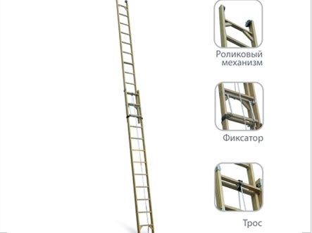 ЛСПР-7 ПРОФИ 73 (трос)-лестница изготавливается из упрочненного широкого профиля 73 мм, что создает еще более комфортные условия при работе на высоте. Состоит из двух секций. Высота лестницы регулируется при помощи тросовой тяге от 4,4 до 7 м.