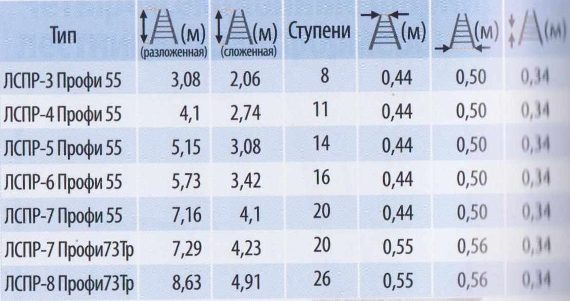 Модельный ряд самых востребованных раздвижных лестниц:ЛСПР-5 ПРОФИ 55, ЛСПР-7 ПРОФИ 55, ЛСПР-7 ПРОФИ 73 (трос). ЛСПР-5 ПРОФИ-55-лестница изготавливается из широкого профиля 55 мм. Состоит из двух секций. Высота лестницы регулируется от 3,1 до 5 м.