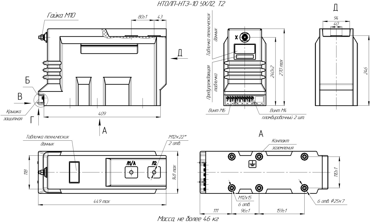 Габаритный чертеж трансформатора НТОЛП-НТЗ-10 УХЛ2,НТОЛП-НТЗ-6 УХЛ2 скачать