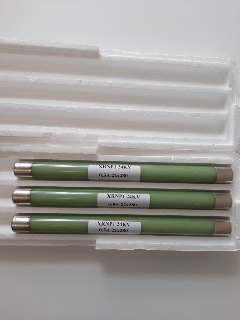 Высоковольтный токоограничивающий предохранитель XRNP1-24/0.5-63 (22х280) для защиты цепей трансформатора, разработанных для частоты 50 Гц, номинального напряжения 20/24 кВ и номинальной силы тока 0.63А, от перегрузки и замыкания.